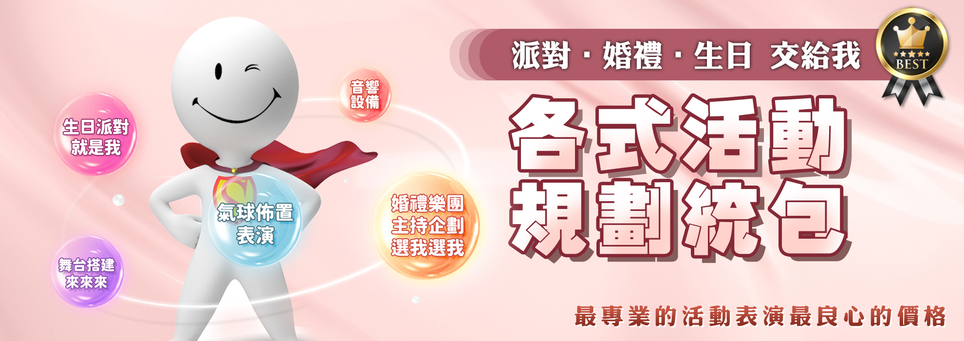 結婚、喜宴、尾牙、春酒、派對、節慶、家庭日、發表會優質的舞台表演,幽默風趣主持風格炒熱氣氛,營造氛圍樂團演奏硬實力,優秀的表演人員,保證讓您賞心悅目!