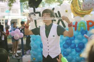 Jennifer姊姊,不僅是氣球達人,更是手工藝與親子DIY講師,擅長色彩學搭配,手工絹印,永生花..等等手工藝,而她的氣球不是裝飾,更是孩子們最期待的禮物。他快速靈巧地變出貴賓狗、愛莎公主、小美人魚、兔兔、花圈帽,每一次都引來排隊長龍。用氣球逗笑孩子,是他的拿手絕活,她親切溫柔的互動風格,也讓孩子安心坐下、家長放心微笑。